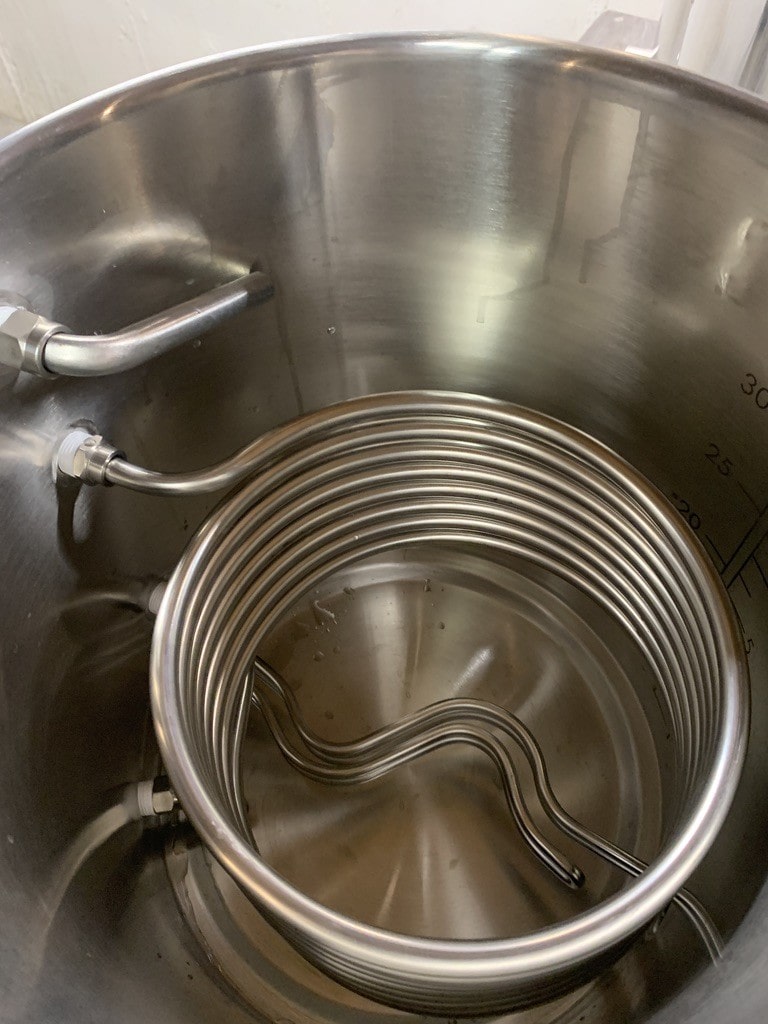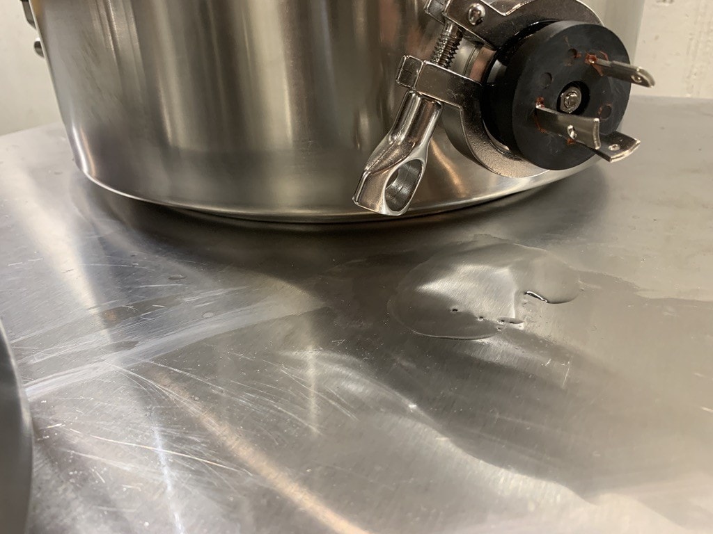With so many fittings freshly assembled I decided it was a good idea to leak test each kettle by filling them with cold water. I wanted to do this so if there was a leak it was cold water and not hot wort leaking out. Nearly everything was leak free with the exception of the heating elements which I discovered you need to support on both sides while you put the tri-clamp on to avoid leaks. The other spot I found a leak was the push to connect fitting on the HERMS coil, I am really glad I ran this test because had I not run water through the HERMS coil with the HLT empty it would have been a leak that would be very hard to find.