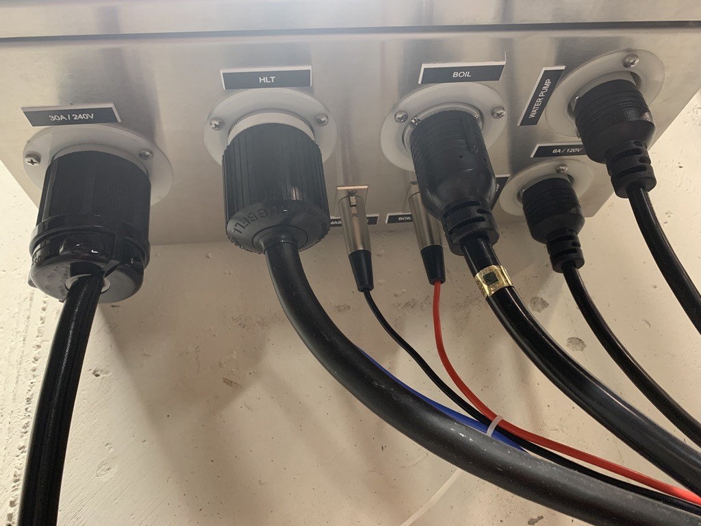The electric panel has threaded screw holes in it that is designed to work with Television wall mounts and that’s how I mounted my panel to the wall which is mandatory because all the electric hookups are on the bottom of the panel. After the panel is on the wall its just a matter of plugging in the twist lock fittings and plugging in the temperature sensors. One problem I did run into is the cord that goes to the boil kettle element is very short and with the way I wanted to set up my system the cord wouldn’t reach the boil kettle, so I had to order a longer one from Amazon. With everything plugged in it was time for the big moment turning everything on for the first time!