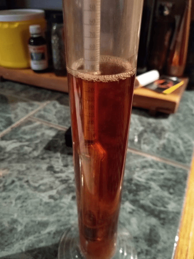 Post-boil wort, deep red color at 1.102 SG. So much maillard reaction!