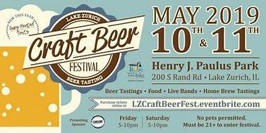 Barrel out to picturesque Henry J. Paulus Park on May 10th and 11th (5-10PM on either night) to enjoy the spring season with Lake Zurich’s Craft Beer Festival to celebrate unique beer and those who brew it! New in 2019 we will have heated event tents for increased attendee comfort.